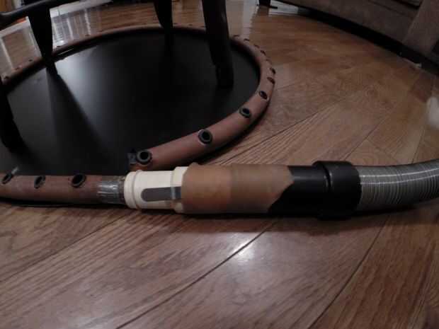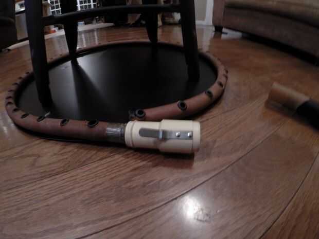 El último paso a ser en su camino a usando su MatVac se conecta al vacío de recorrido. Las conexiones de vacío se encajará overtop del extremo de la manguera, creando un sello hermético buena. Si no encajan entre sí, puede utilizar un pedazo de elástico circular para sostener las piezas nosotros cara a cara, como en la foto. Así, como el corte de pelo puede encender la aspiradora y el pelo será aspirado como es cortar, ahorro de tiempo al final del corte. La MatVac hace que la tensión de caminar en el cabello y conseguir que todo el piso una cosa del pasado!