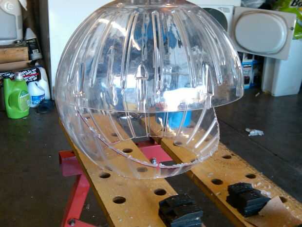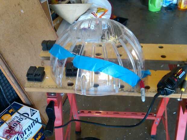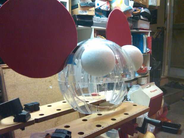 Use el destornillador para desmontar la bola. Seguimiento de la boca de papel sobre el plástico. No tiene que ser perfecto, pero debe dar la idea general. Ahora utilice cinta de enmascarar para trazar la línea dibujada. La cinta adhesiva le asegurará una línea recta. Colóquese usted gafas de seguridad y utilizar la Dremel para hacer el agujero para la cabeza más grande (Asegúrese de no cortar demasiado o a cortar en la parte que sostiene la parte inferior de la boca). Una vez que su cabeza cabe por el agujero, empezar a cortar la boca. Tome la parte superior media y ampliar las ranuras donde sus orejas irá (el fieltro hará el abedul bálticos orejas más gruesos). suavizar cualquier espuelas ásperos con papel de lija. Una vez que la boca se corta limpiamente, reforzar la otra área del panel y la boca con cinta adhesiva. Cuando esté satisfecho, vuelva a montar la bola. Tener los ojos y oídos y compruebe si todo encaja perfecto antes de pasar.
