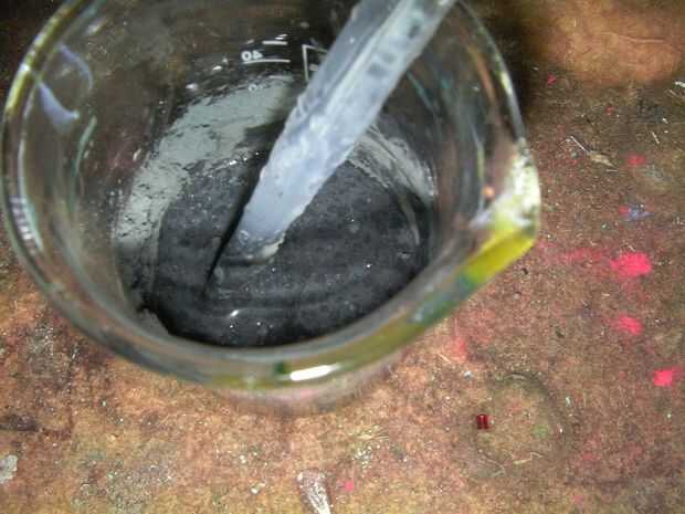 En la segunda foto se nota lo negro es la mezcla de pintura, esto sucedió con un poco de la mezcla de la mano. otra manera improbable con propósito construido otra vez medio.