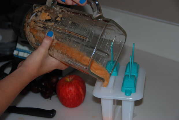 Vierta la fruta mezclada en el moldeador de paletas.