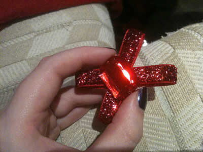 Paso 6 : Ensamble adornos con una pistola de pegamento caliente. Aquí he creado lazos con cinta de brillo y piedras preciosas de plástico.