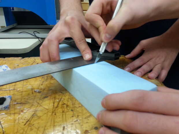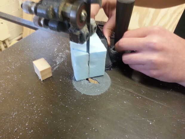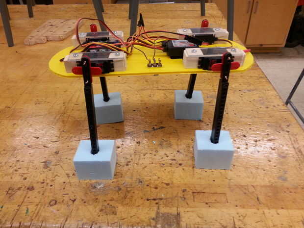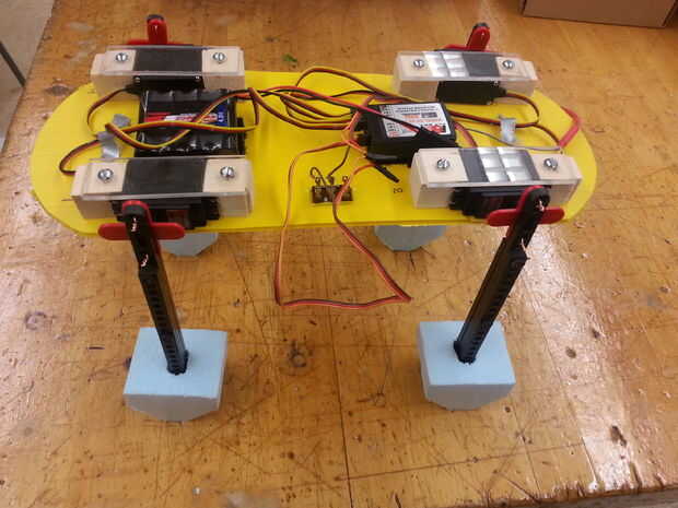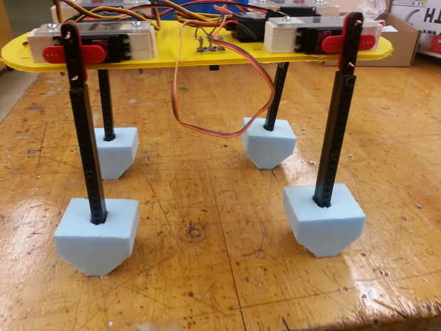 Como usted puede decir, controlando las piernas fue el mayor problema. Al principio pensamos, podría ayudar una base plana, entonces pensamos que puede ayudar una forma trapezoidal, luego nos mudamos a pequeños propietarios cilíndricos. Espuma de poliestireno fue utilizado para estos estabilizadores de piernas porque era fácil de cortar y podía absorber los choques cuando el Fluffy se movió adelante.