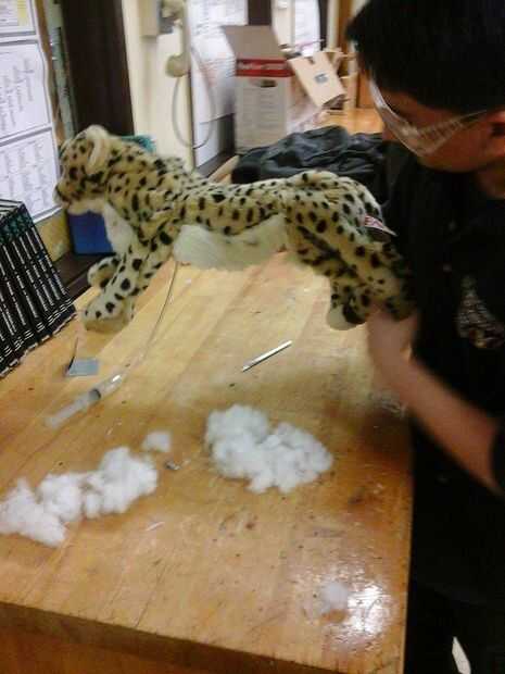 Un animal de peluche fue adquirido a los juguetes r nosotros y fue pelado por el tuyo realmente. El relleno fue quitado mientras que hace una cara de miedo (lástima perdió el cuadro) y el bolso de la haba de su culo fue jugado con hasta que se rompió. Antes de instalar el cuerpo, teníamos clase de diversión con la piel---tirarla en el pasillo por su cola o simplemente caminar con él en la cabeza a flipar los otros niños. Usted debe han visto rostros de los otros niños.