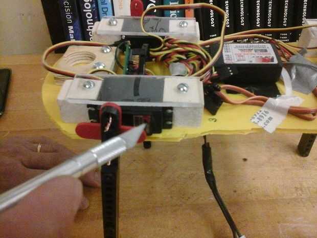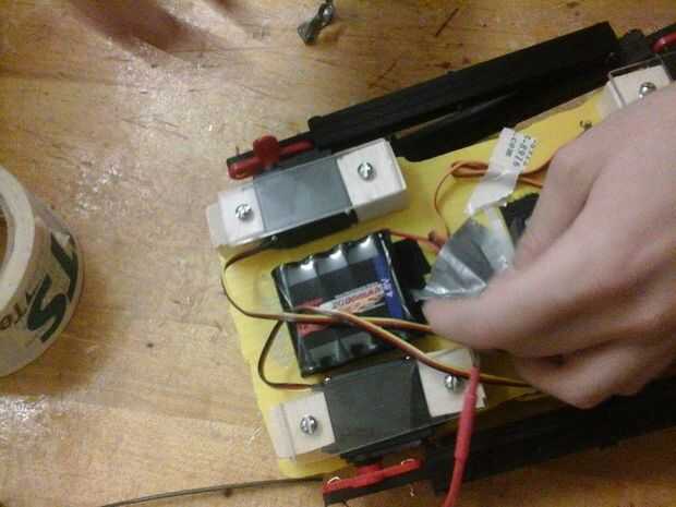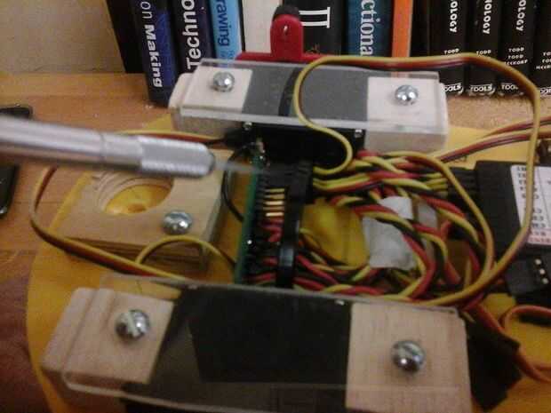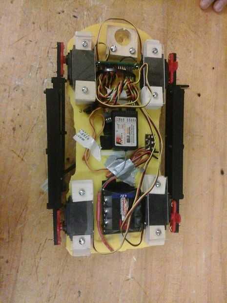 Los servos están vinculados a un receptor de 8 canales, que fue funcionado por el transmisor flysky TH9X. Un tablero de alimentación servo se instaló entre los servos y un 7.2v batería de 3000 mah. Los cables del otro extremo de la powerboard fueron conectados al controlador de servo. En otras palabras, los servos y el receptor fueron accionados por separado porque necesitan diferentes cantidades de energía.