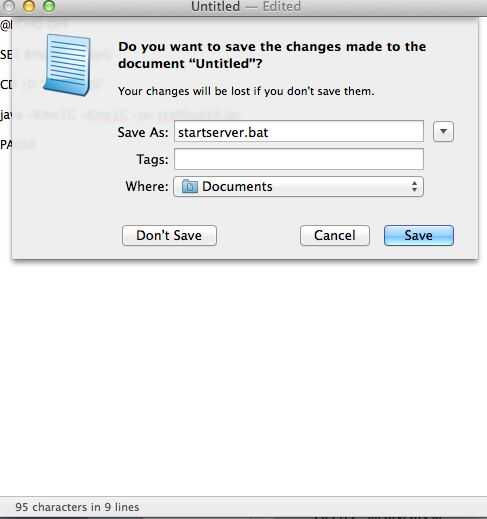 Mira la foto de arriba para ver cómo realmente se verá. Guarde el archivo como "startserver.bat" y moverlo a la carpeta que creó en el principio. Todos los componentes necesarios se cargan startserver.bat abierta y. \