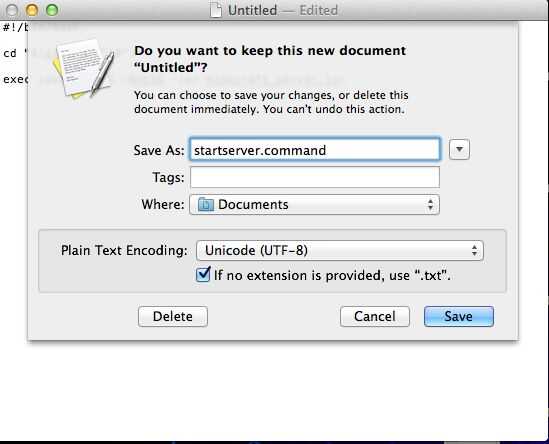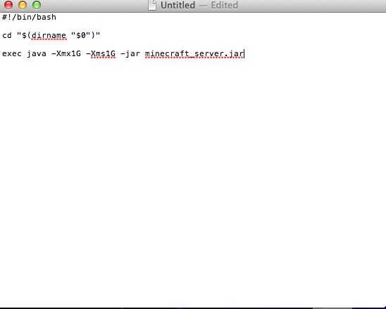 Crear una carpeta en tu Mac llamado "Minecraft_Server" o cualquier cosa que le recordará es la carpeta de servidor. Ir a https://minecraft.net/download y descargar el minecraft_server1.7.10.jar que se encuentra bajo servidor multijugador. Coloque el archivo en la carpeta de servidor de Minecraft. Abierto textedit > formato > texto y pegar en: