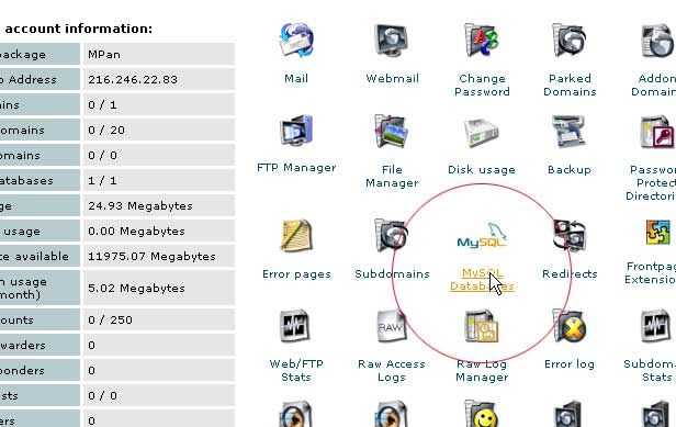 3. Haga clic en el botón de bases de datos MySql.