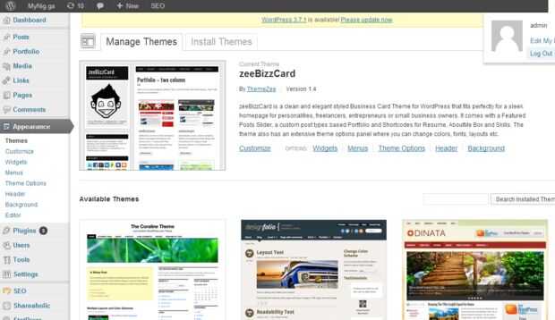 4. Sitio web usted está ahora listo para ir. Se puede personalizar haciendo clic en apariencia > temas y seleccionando un tema que te gusta. Usted puede también Google algunos temas y subirlos por FTP, en el wp-content > carpeta de temas.