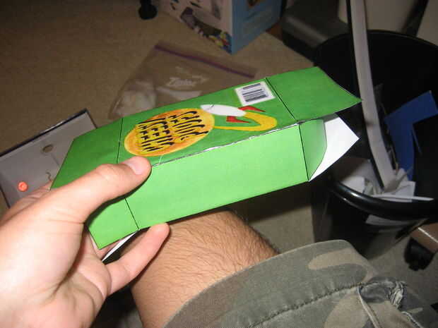 Asegúrese de que la caja en forma de cereal caja con la parte superior y las aletas de la parte inferior abierta. Luego pegue lateral para formar lo que se muestra en la siguiente imagen