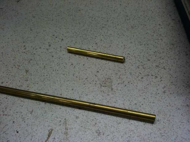 Levante la varilla de latón seleccionadas y cortar a la longitud deseada, tal vez solo deja un Cm o más de lo necesario.