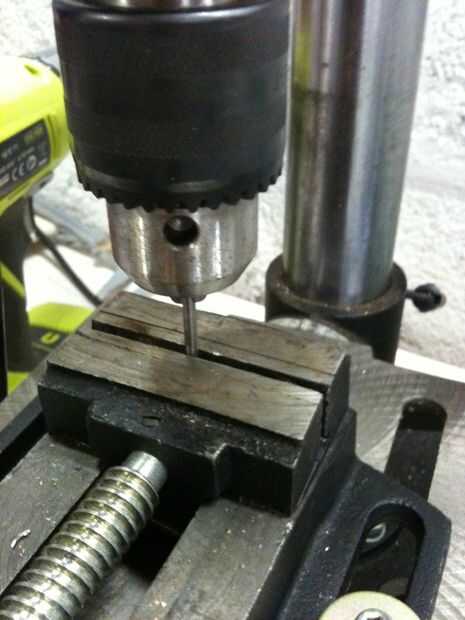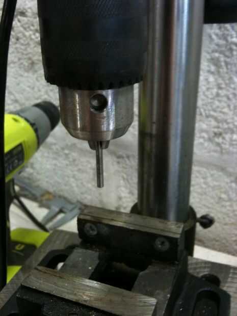 1) pones la broca en el campo de la prensa, pero en sentido inverso (la parte de la corte dentro de los maxilares)