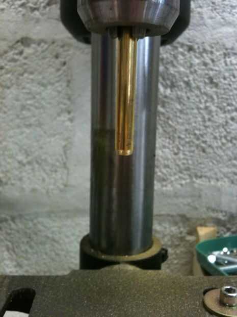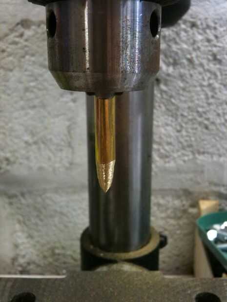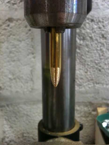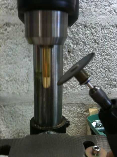 Tan sólo pegué la pieza en el taladro una vez más, esta vez había roscada hasta funcionó y trabajó la cabeza de la aguja con pedacitos de mi dremel de pulido.