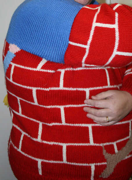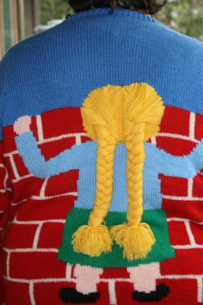Así como añadir un motivo único para un puente, se puede diseñar una escena que utiliza la mayor parte de la zona del puente. La mejor manera de diseño una imagen en todo es saber exactamente cuántas puntadas y las filas son en un pedazo de puente, especialmente si el diseño se va hasta los hombros. Al diseñar un todo sobre la imagen, asegúrese de que cualquier parte que toca la costura lateral coincide con la la costura lateral en la otra pieza. Si usted echa un vistazo a mi puente de pared, puedes ver cómo envuelto el patrón de la pared para que cuando el puente fue cosido, el patrón del ladrillo era continuado. A menos, que ha tejido un puente antes y tomó nota de la cantidad de filas y puntadas había alrededor del cuello y hombros, yo sugeriría simplemente usando una imagen con una simple parte superior.