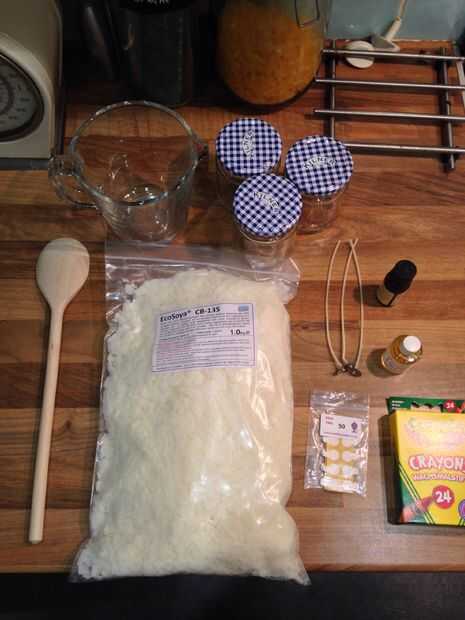 • Cera - he usado cera de la soja, su hollín libre, no tóxico y respetuoso del medio ambiente (en comparación con la cera de parafina)