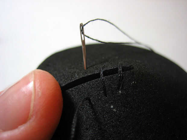 Sostenga los dos tamaños para que sea un poco forma de sombrero. Compruebe para ver si le cabe. Ajuste según sea necesario.
