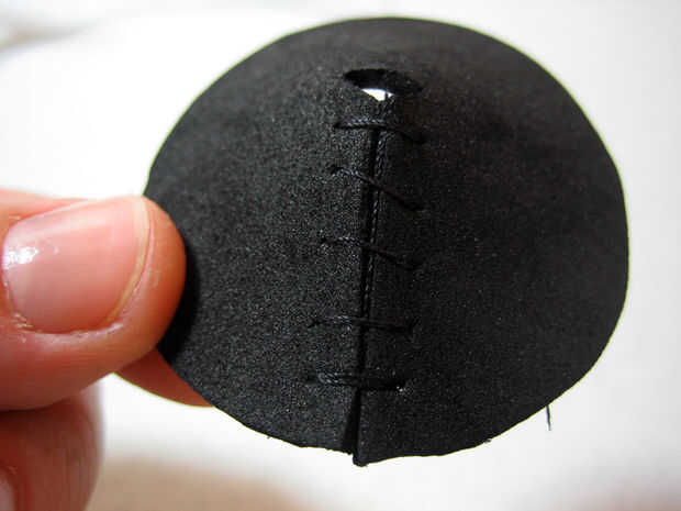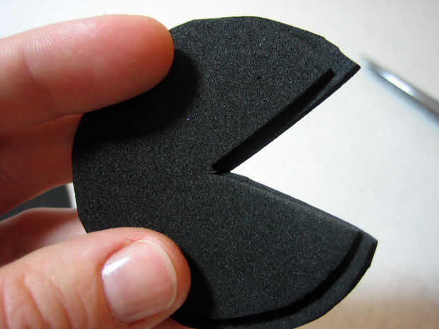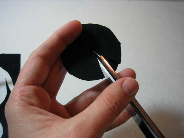Corte una forma de "Pac Man" de la forma. Asegúrese de que su primer corte va a la mitad del círculo. Si quieres borlas cortan una pequeña porción en el centro de los ojales.