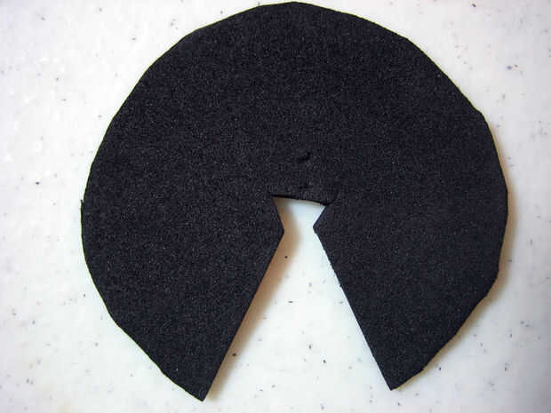 Tomar una plantilla circular ligeramente más grande que el diámetro de la boquilla y corte de la espuma del arte.