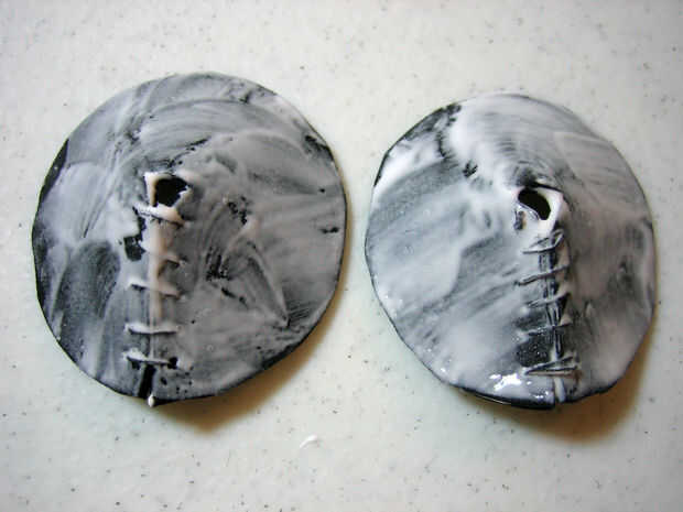 Alinee el centro de la tela con el centro de las tapas. Poner un poco de pegamento donde la tela se se superponen y prensa plana. Algo de tela permitirá para sangrar a través pero mayoría de las veces que sea invisible cuando se seca el pegamento.