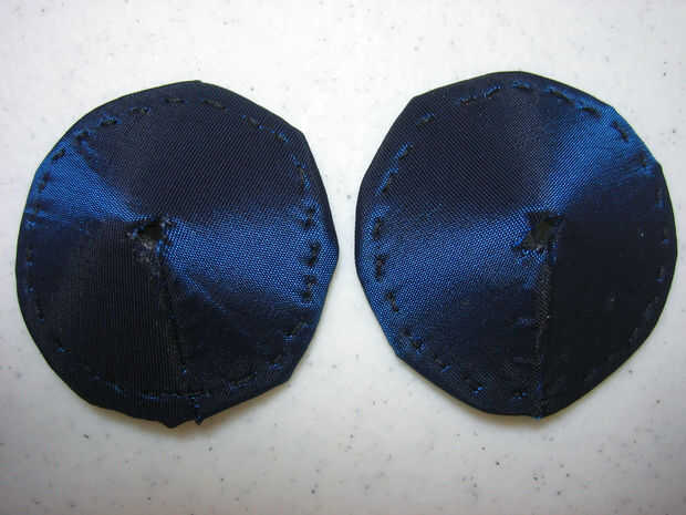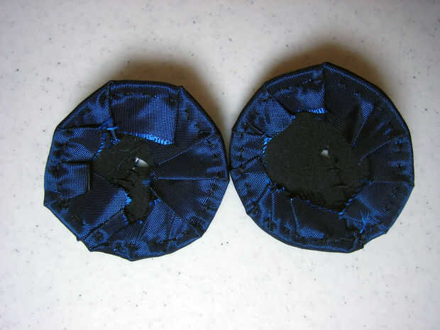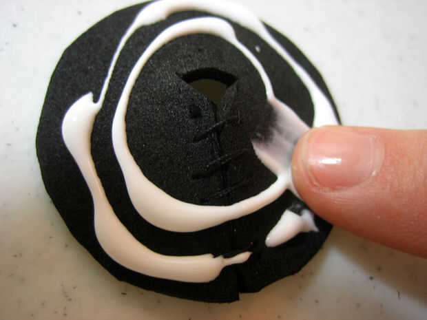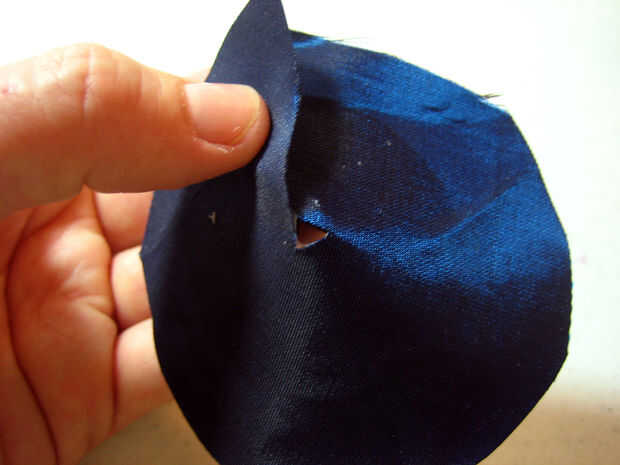 Cortar una línea recta desde el exterior al centro de la tela al igual que para la espuma. No olvides también cortar el ojal.