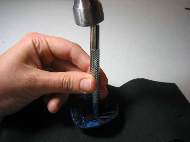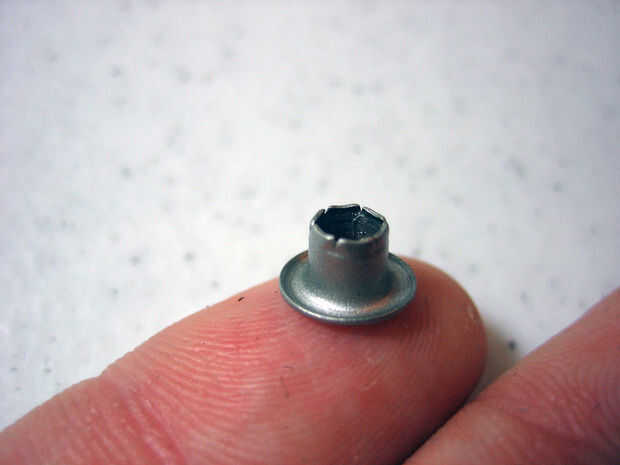 Descansar la smasher de ojal en el interior de la arandela y golpee suavemente con un martillo hasta que el interior se divide como una flor. Martillo con cuidado para no deformar la parte frontal de la boquilla.