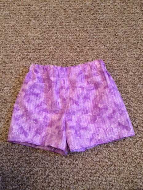 Ahora tengo un par de cortos para mi nieta y sé que van a servir porque le tenía prueba en el par original que compré en la buena voluntad. También tengo un buen patrón, así que le puedo hacer algunos más cortos. Puesto que esto funcionó tan bien que voy a intentar cubrir algunos cojines.