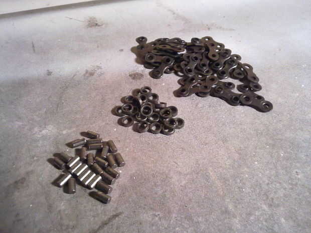 Ahora, lo que tienes que hacer es tomar la cadena de la bicicleta y desensamblaje varias veces, para obtener 24 pins, como las imágenes muestran.