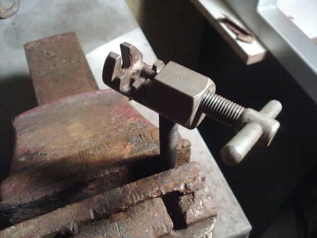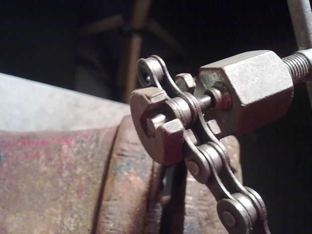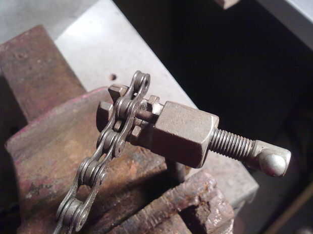 Puse mi herramienta de cadena en la prensa para tener un mejor manejo.
