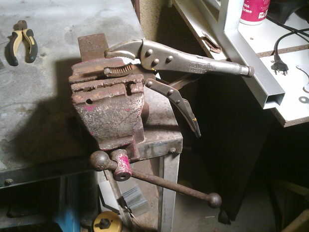 -En primer lugar, soluciono mi visegrip en la prensa