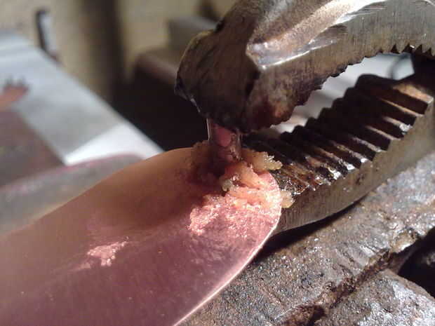 - Entonces Fije la hoja con el perno en posición, en el visegrip