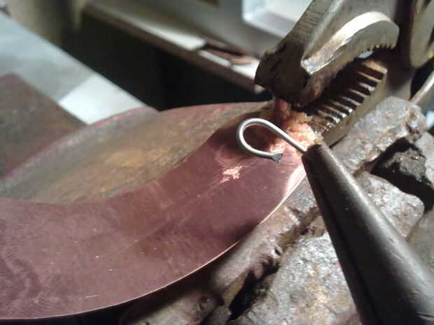 -A continuación, corte un trozo de alambre de soldado, unos 15 mm de largo y giro en "U" como forma