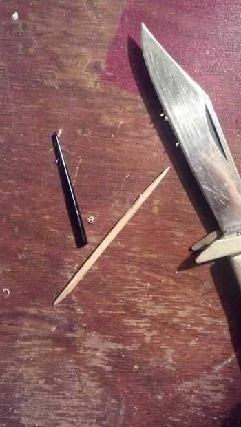 Para empezar, vas a querer exagerar la forma cónica de su palillo de dientes por tallar lejos en un extremo, pero mantener la longitud. Comparé mi palillo de dientes a un taper de 10g, pero sin cocinar espaguetis y perchas de alambre están más cercanos de 12g.