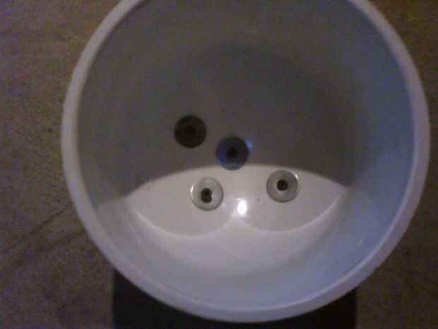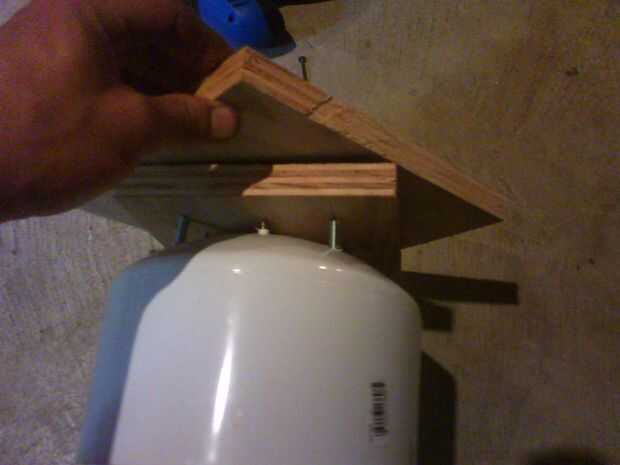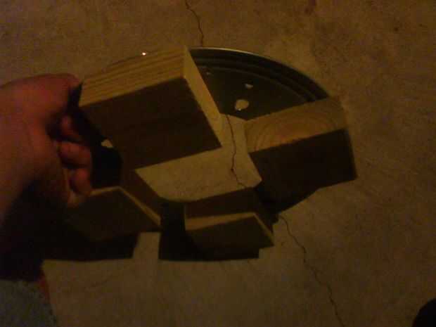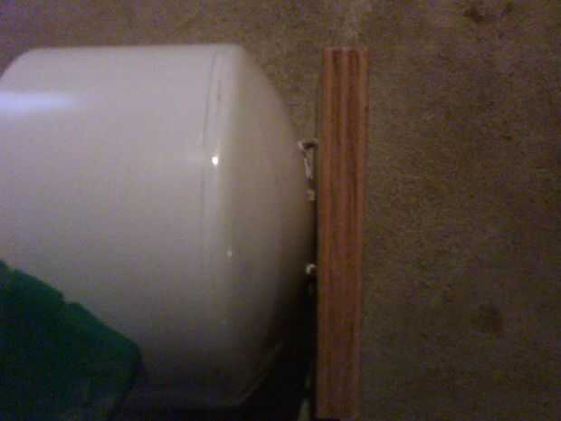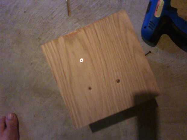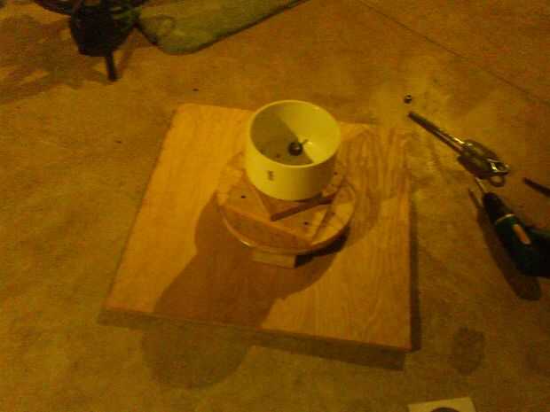 El cuadrado de 8 pulgadas de madera entonces fue atornillado hacia arriba en eso cuadrado de 6 pulgadas con algunos tornillos de 2 pulgadas largo de la construcción. Después de comprobar el nivelador en la tapa de PVC con la base cuadrada sentados en el suelo, encontré que aunque un lado era cuadrado, la línea medida perpedicular a él era horriblemente apagado, así la terminología de la palabra que vengo ahora a se refiere a como descarga. Así que, después de mirar los niveles, encontré que pude ajustar el tapón ras fue colocando arandelas de defensa extra entre el cuadrado de 6 pulgadas de madera contrachapada y el tapón de PVC.