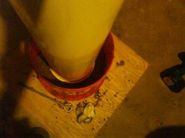 Derramé algunas concreto en la parte inferior de la tapa de PVC sólo para mantener la armella en el lugar también.