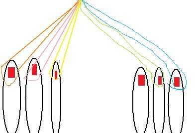 Luego poner 3 bucles en su mano izquierda y 2 en la mano derecha.