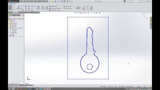 -Empiezo con importación de fichero dxf en 2d sketch. Luego medir la altura y la anchura de la llave original y lo mismo en solidworks.