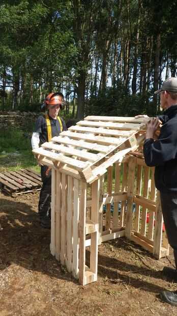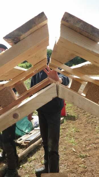 El otro borde de las plataformas debe cortarse con un labio colgante, que se cuelgue por el lado de la plataforma. El ángulo de la azotea entonces debe ser probado para asegurarse de encaje bien, un ligero ajuste puede ser necesario para conseguir una combinación perfecta. No asegure el techo a la estructura todavía, aunque.