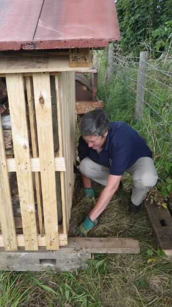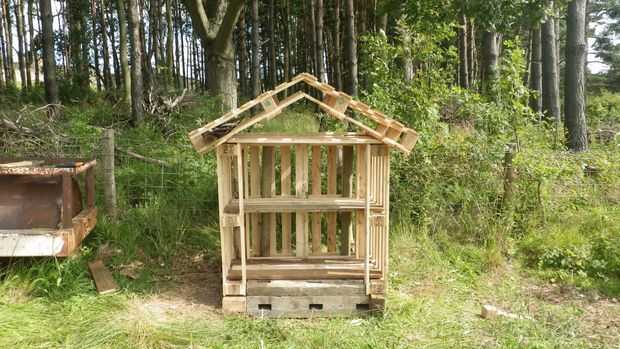 Los cortes fuera de los puestos base de madera se pueden utilizar para incluir la base, proporcionando hábitat para mamíferos pequeños. La brecha más grande en la parte posterior se puede llenar con paja seca y las hojas para crear un espacio adecuado para erizos.