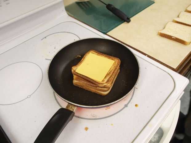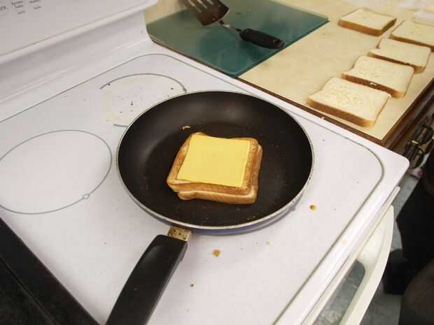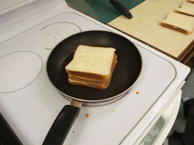 Se puede esperar menos tiempo cada tirón porque el peso del sandwich ayudará parrilla más rápido.