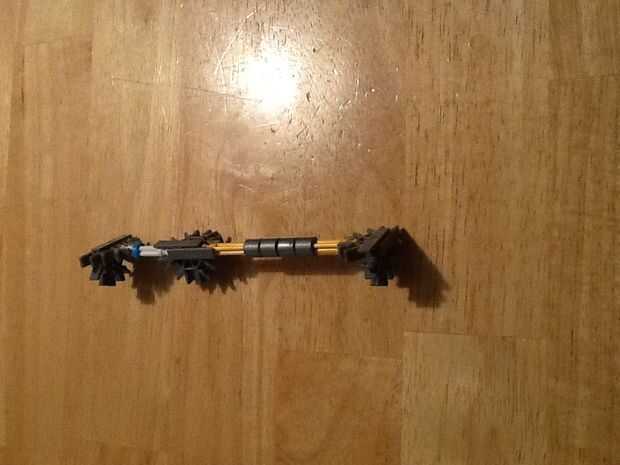 esto es un balisong de KVG que funciona exactamente como uno realPaso 1: Las piezas que se necesita Necesita 3 conectores naranja, 4 blanco piezas, 2 piezas amarillo, 2 piezas naranja flexibles, 2 piezas de rueda pequeña, 3 conectores de color púrpur