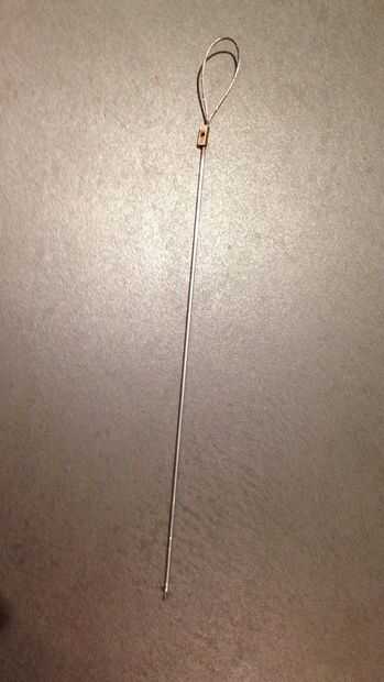 esto es un colgante de alambre que fácilmente pueden enganchar, desenganchar y utilizar en otros estilos de collares.Materiales:7 alfileres de cabezaalambre 14ga de 26 pulgadascristales de 7 x 8mm negroHerramientas:Cortador de alambreAlicates de la n