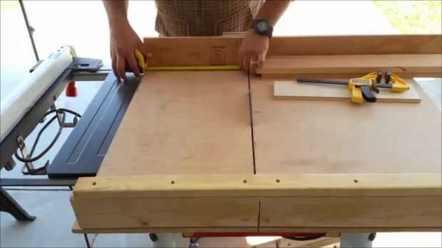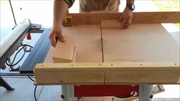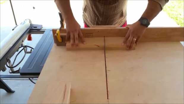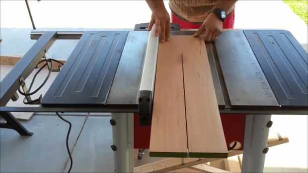 Para este paso usé mi Sierra de mesa para limpiar los bordes de la madera. Establecer la valla de mi Sierra de mesa en 4" luego corrió a la pieza de madera a través de la sierra que produce 2-4" tiras de madera que son alrededor de 27" de largo. Una vez que tengas tu madera Ripeado a 4" tendrá que cruzar cortar la madera a 10". Para ello he utilizado mi cruz corte trineo mi Sierra de mesa. Yo había medido hacia fuera de la hoja 10" y un bloque de tope que ayuda a conseguir cortes uniformes muy agradables.