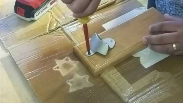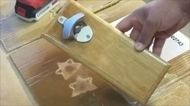Para hacer esto, coloqué el abrebotellas de pared en la parte superior de la Junta, asegurándose de que fue centrado y marcados los orificios con un lápiz.
