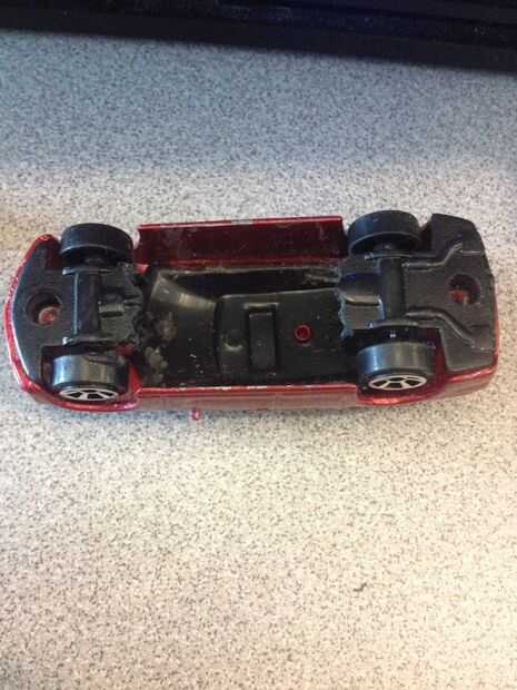 voltear el coche y cortar un cuadrado en la parte inferior del coche.