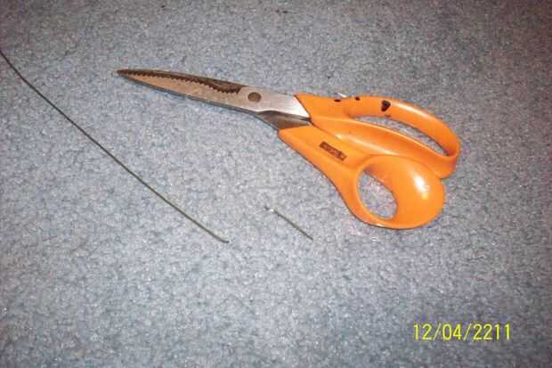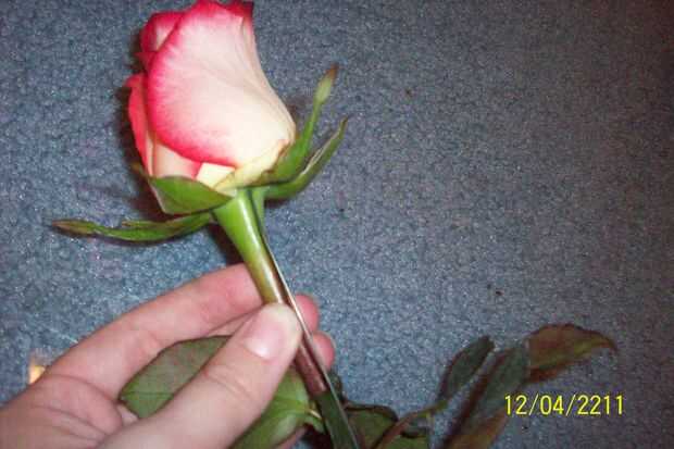 Tome el cable y cortar la punta de 1/8 de pulgada hacia abajo y en ángulo. Esto es sostenido por lo que puede ser pegado en su flor. Tomar el extremo afilado y palillo en la flor en la base de la cabeza y como cierre al principio de la madre como usted puede. (Si estás haciendo una rosa, solo pega esto en aproximadamente 1/6 de pulgada, pero si estás haciendo una flor abierta que como un girasol o una Margarita, usted puede pegar el cable todo lo largo, doblar en un gancho y tirar hacia abajo de modo que combina con la flor).