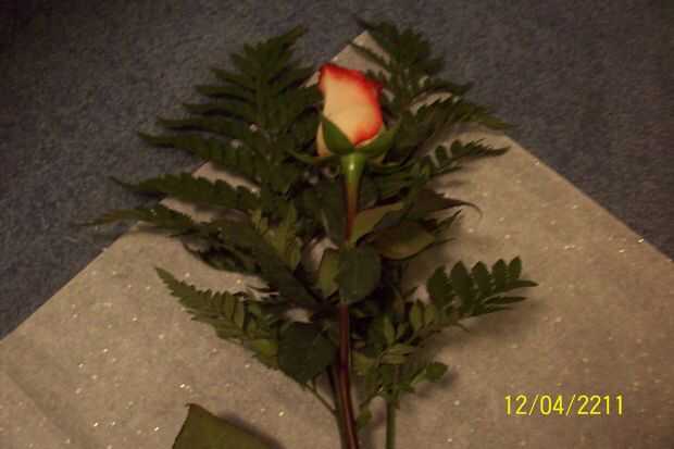 Primer lugar el cuero diagonalmente sobre el celofán como mientras corte. Esto es la base para el abrigo y guarda el resto de las flores en el lugar. Ahora coloque su flor principal (el uno con el tubo) centrado en el cuero. Tomar el relleno y colocar a cada lado de la flor principal, pero sólo en el cuero. (Si quieres que se vea aún más completo, recortar uno de los más rellenos alrededor de una pulgada y colóquela sobre su flor principal para añadir más profundidad cuando su envuelto).