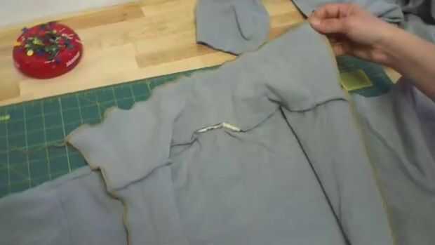7. serge a lo largo de la parte superior de la manga, parar donde empieza el cuello.
