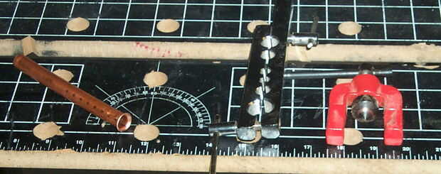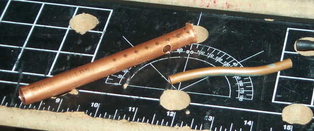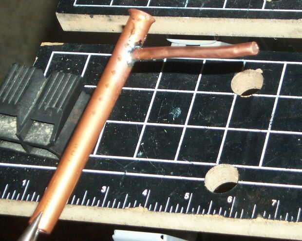 Dobló el extremo del tubo de 1/4" siempre tan levemente. Luego pongo el los dos juntos. La apertura de 1/4" tubo debe inclinarse hacia el frente del tubo 1/2" y no debe subir más entonces 1/3 del camino al centro. Se montaron la Asamblea en mi vicio que gravedad sería mantener el tubo más pequeño en lugar. Usé mis habilidades limitadas de la plomeria soldadura los dos juntos.
