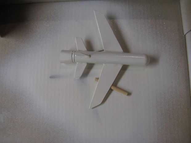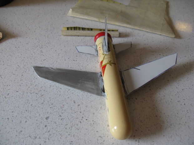 La tapa del tubo del cigarro es un rojo bonito, así que estoy dejando de esa manera y no pintarlo. Envolvió un trozo de cinta de pintores alrededor del extremo y rocía una capa de imprimación.