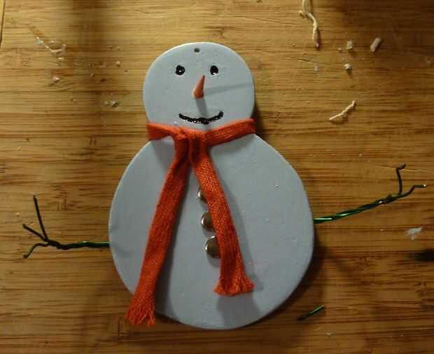 Cinche la bufanda alrededor del cuello y pegamento del muñeco de nieve en lugar. Fray alrededor de un cuarto de pulgada de cada extremo del cordón (Foto 2).