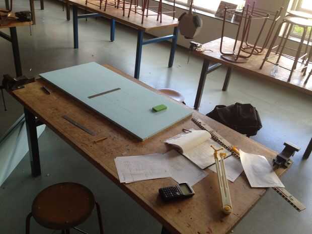 -Cortar el interior de la otra tabla hacia fuera. Mantenga un borde de 6 cm.